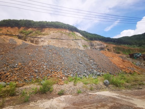 寧海縣強(qiáng)蛟鎮(zhèn)鐵江路東側(cè)(海螺水泥南西側(cè))邊坡,由于人為開挖形成高陡邊坡,部分坡段危巖碎塊存在地質(zhì)災(zāi)害隱患,坡腳處擬建鐵江路,坡面裸露影響整體的視覺效果,2018年3月16日寧海縣政府協(xié)調(diào)會(huì)要求對該處采石邊坡進(jìn)行排險(xiǎn)整治,列入地質(zhì)災(zāi)害處置和礦山復(fù)綠項(xiàng)目。 浙江省工程勘察設(shè)計(jì)院集團(tuán)有限公司于2021年4月編制完成了《寧海縣強(qiáng)蛟鎮(zhèn)海螺水泥廠南段廢棄礦山治理工程設(shè)計(jì)》(以下簡稱《治理工程設(shè)計(jì)》);為切實(shí)保障該廢棄礦山生態(tài)環(huán)境治理工程的實(shí)施,并為下一步采礦權(quán)出讓提供資源儲(chǔ)量依據(jù)。 根據(jù)《治理工程設(shè)計(jì)》報(bào)告估算,礦山開采最高高程為+92m,開采最低高程為+8.0m。采用水平斷面法估算的石料礦控制的經(jīng)濟(jì)基礎(chǔ)儲(chǔ)量(122b)石料46.183萬立方米(120.538萬噸),風(fēng)化巖石6.501萬立方米(14.302萬噸),剝離物5.321萬立方米,剝采比為0.101:1立方米/立方米。該擬建礦山生產(chǎn)規(guī)模:26.34萬m3(67.42萬噸),年設(shè)計(jì)生產(chǎn)規(guī)模為:77.1萬噸,礦山開采年限為2年。該擬建礦山擬采用自上而下分臺(tái)階(分層)機(jī)械開挖,挖掘機(jī)鏟裝,汽車運(yùn)輸?shù)拈_采工藝。