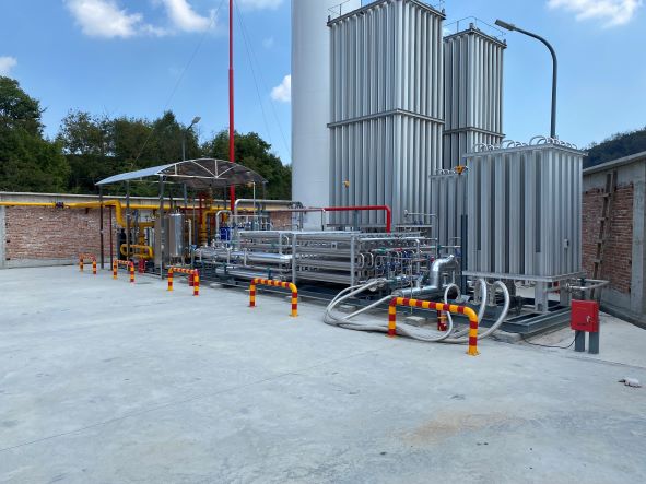 由于企業所在地臨安區島石鎮仁里村未覆蓋城鎮燃氣管網,為了滿足生產需求,廠區建有液化天然氣供氣站(下簡稱“氣化站”),為燃氣鍋爐、熱風爐等用氣設備點供天然氣,屬于工貿企業配套設施。